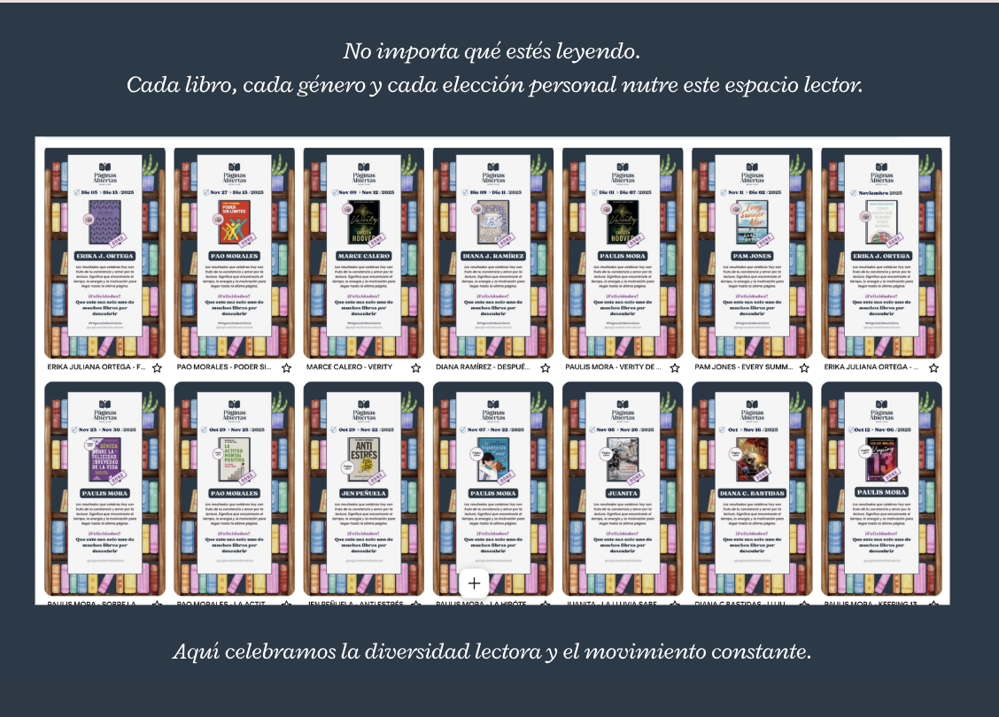 Un espacio de lectura libre y flexible, creado para personas que quieren mantener su hábito de leer sin presión, a su ritmo, y con el libro que quieran.